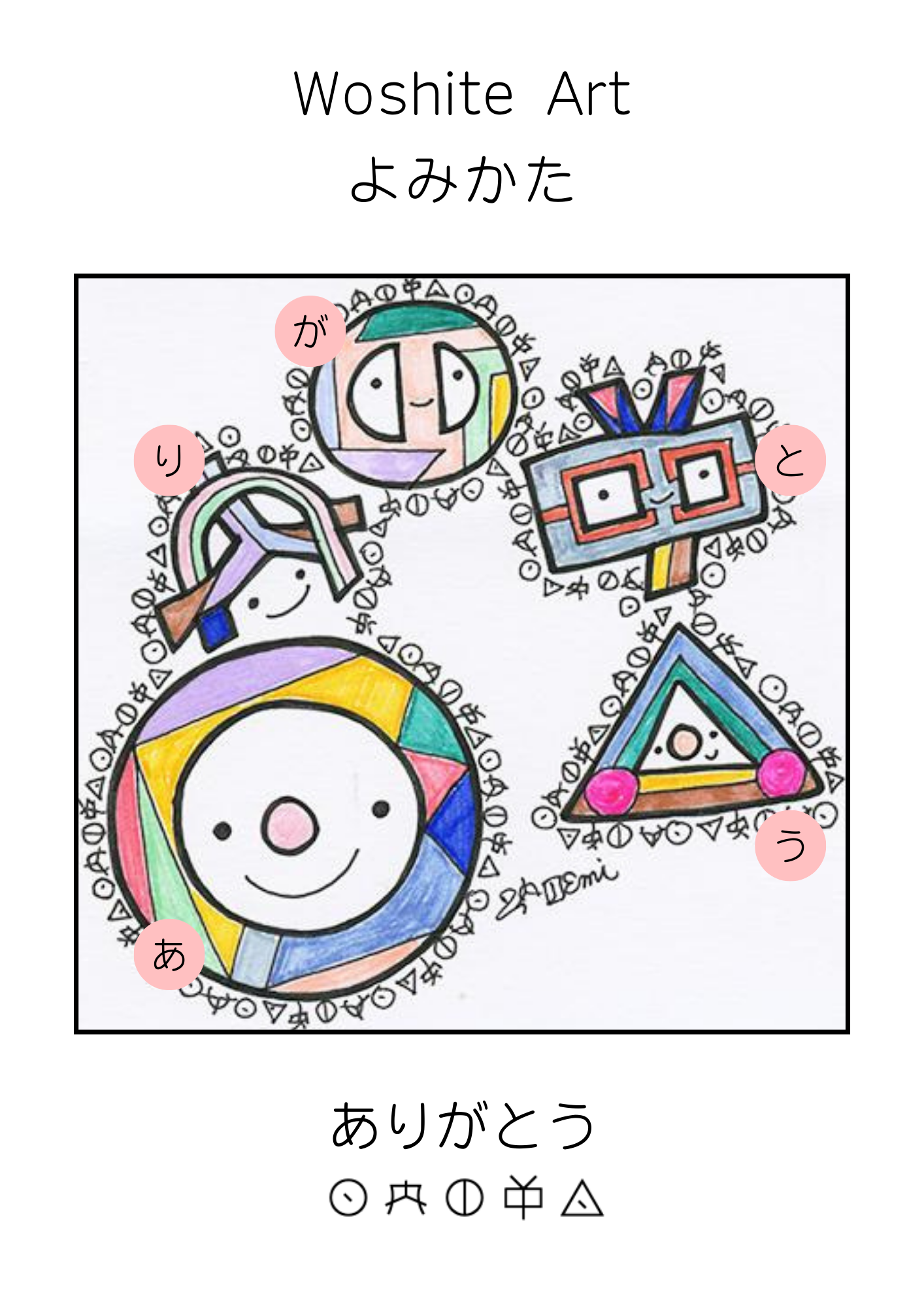 この作品には、ヲシテ文字で「ありがとう」という言葉が書かれています。