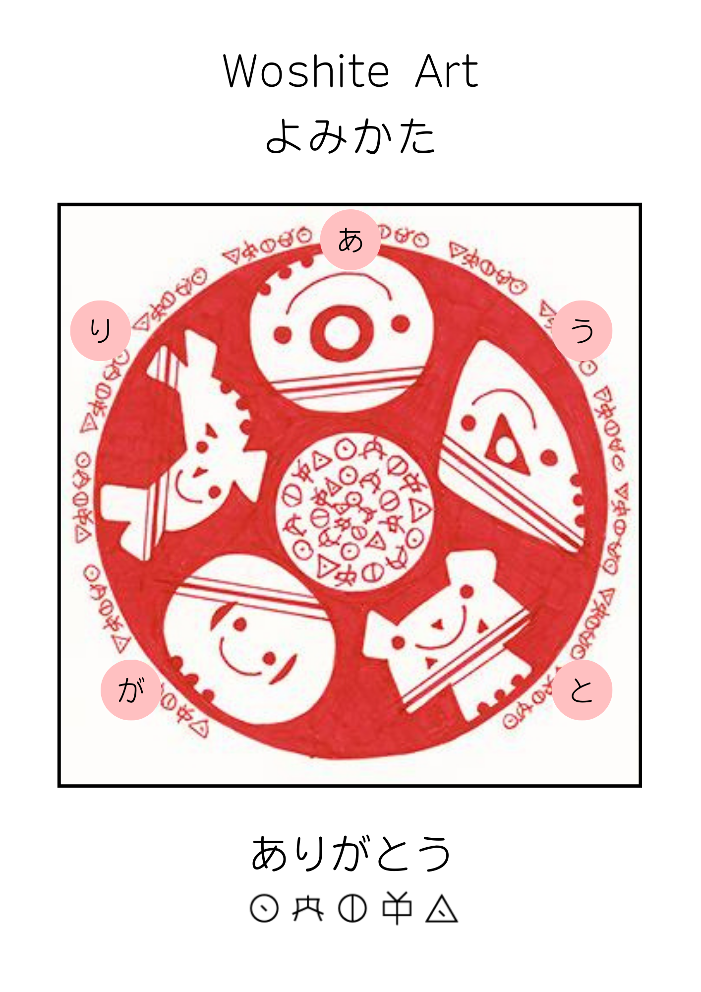 この作品には、ヲシテ文字で「ありがとう」という言葉が書かれています。